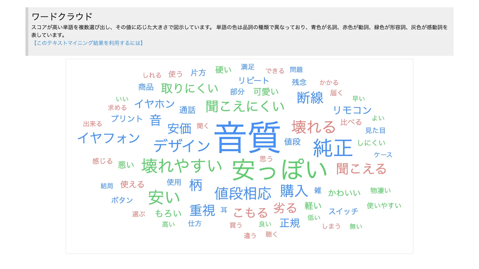 ワードクラウドにより、文章中の重要な単語をひと目で可視化します